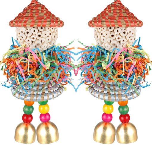 - Vibrant Design: Adorable bird toys featuring colorful elements, interactive colorful shred crinkly papers, and vibrant big golden bells designed with safe, natural Sola balls,colorful hat, ensuring birds safe and engaging playtime.